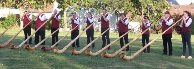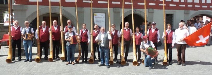 das Alphornbläser und Fahnenschwinger gemeinsam auftreten.